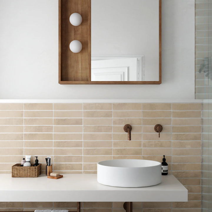 Inspired by the pure essence of hand-worked clay, in a more urban and modern style. Create a timeless space full of personality and warmth, available in 10×10 and 6x25cm formats.