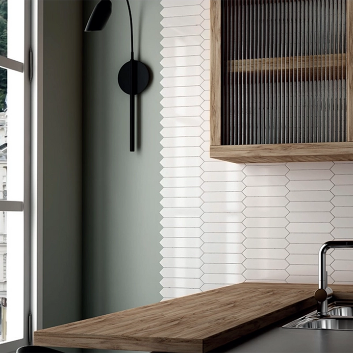 Add vibrant colour and striking texture to your wall with these beautiful glossy picket tiles. Available in a 5x25cm format.